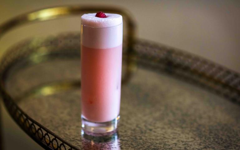 3/14/19 – Revel Spirit’s Wrennie West created this gorgeous riff on the classic Ramos Gin Fizz. Yes, any Ramos Fizz variation is a labor-intensive cocktail to make, but it’s a bartender favorite and looks and tastes great. Trust us, it’s worth your time. The raspberry and rum combo give this drink a unique tiki twist too, not to mention a beautiful pink color. It literally tastes like a raspberry milkshake.